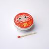 ハイキングやキャンプなどアウトドアでの火の用心や安全を祈願してダルマをデザインしました。また、ダルマの色にはそれぞれ意味があり、赤いダルマは魔除け(熊よけ)、黒いダルマは商売繁盛(仕事運)の意味があります。