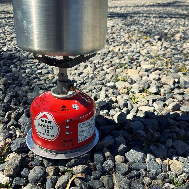 使い方は簡単で、地面とプレートの間に小石や小枝を挟み水平を作ります。その上に火器をのせて使用することにより安定して湯沸かしを行うことができます。