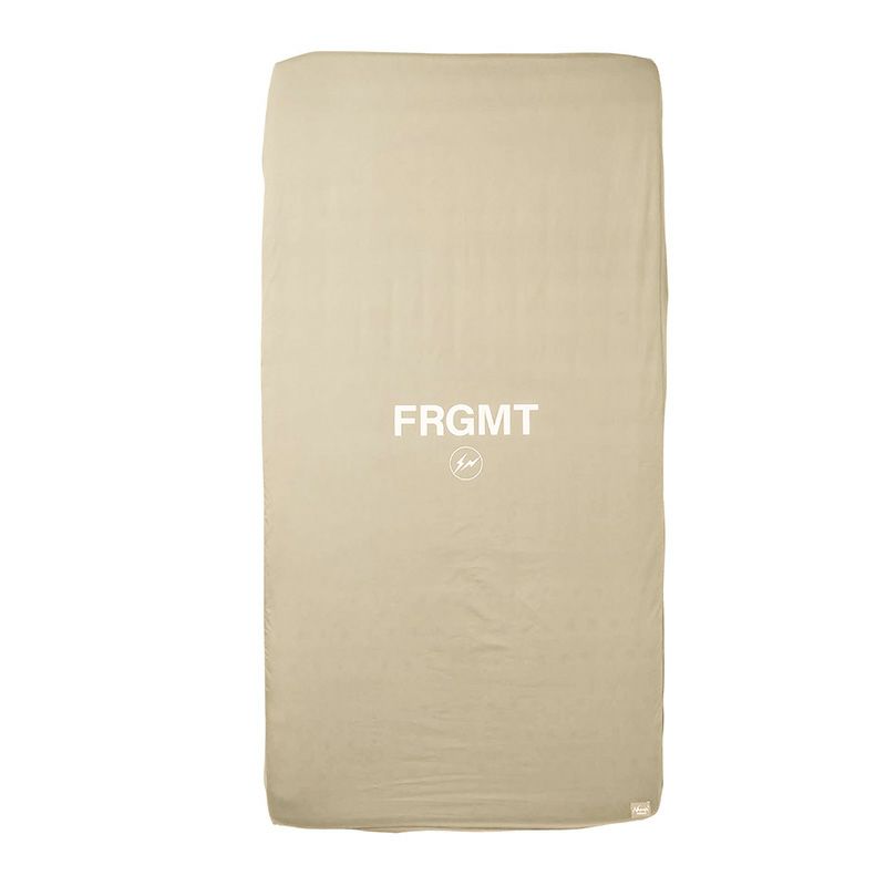 しかしそれだけではなく、中央部には「FRGMT」のロゴを大胆にレイアウト。高級ホテルのような贅沢なシーツにストリートファッションのエッセンスを落とし込んでいるのは、フラグメントならではでしょう。カラーはインテリアに馴染みやすいカーキとベージュの2色展開。いずれもサテン織ならではの控えめな光沢があり、自然にできるドレープがさらに上質さを引き立てます。