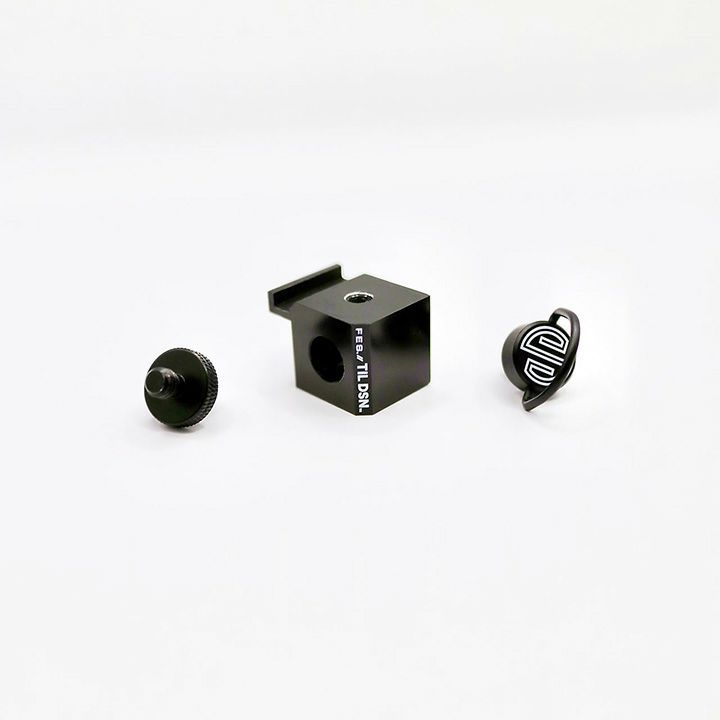 φ10.2mmの左右貫通穴、上面は1/4三脚ネジ、下面はM8ネジ、背面はネオジム磁石取付。