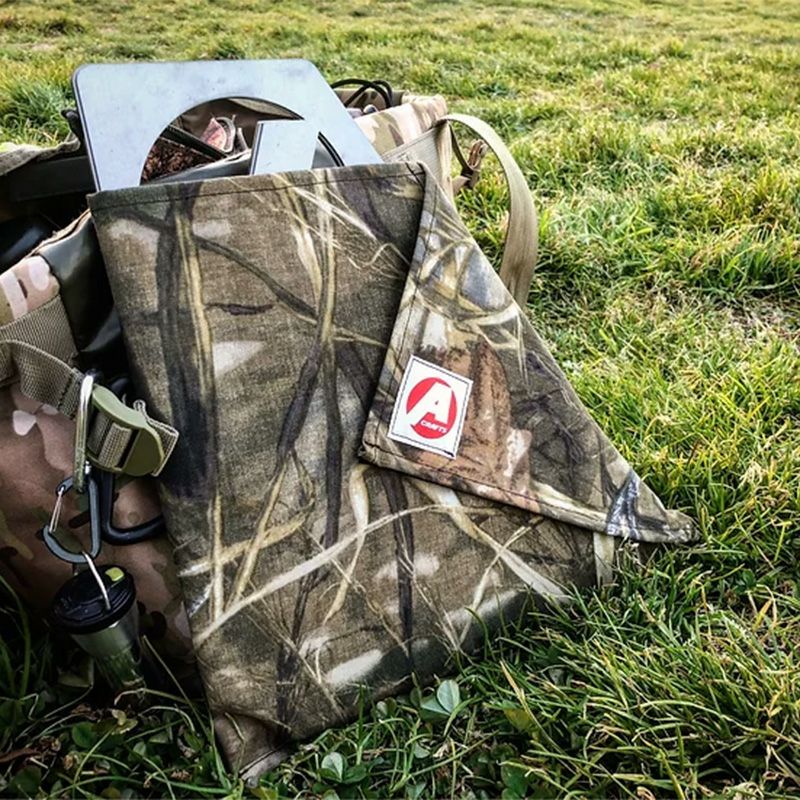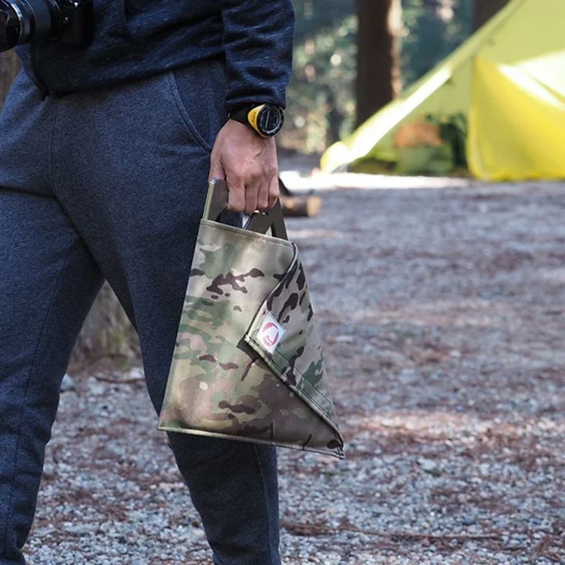 マルチカム (コーデュラ)と帆布(カーキ)かリアルツリー(コーデュラ)と帆布(濃茶)のケース付き 板を組み合わせて作る焚火台です。
