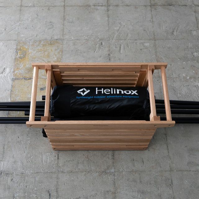 天然木材を使用した本体は木材の除湿効果と通気性の高い構造により、使用後の湿ったキャンプ道具をそのまま放置してもカビが発生するリスクを抑えます。