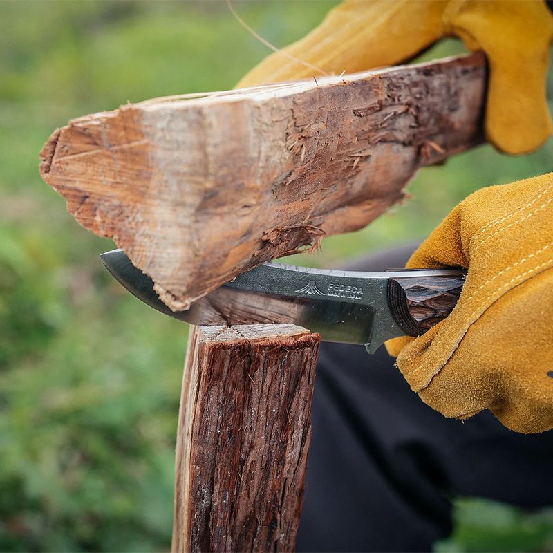 薪へ刃を入れられる強度を備えつつ、包丁のように食材を切り分けられるバランスの良さが魅力です。