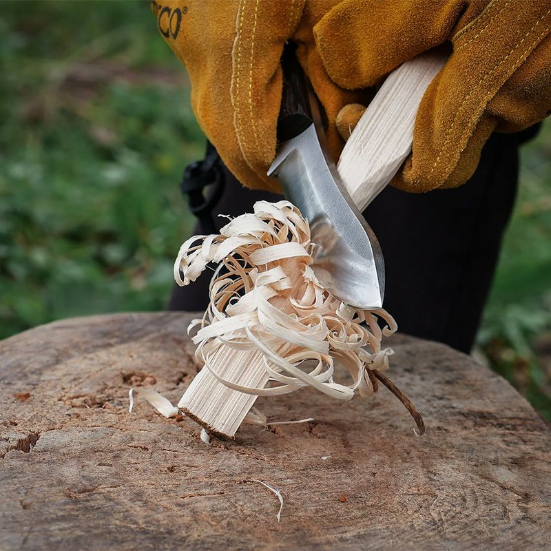 バトニング・フェザースティックも十分こなしながら、一本で「切る」「割る」「削る」「調理」が完結します。