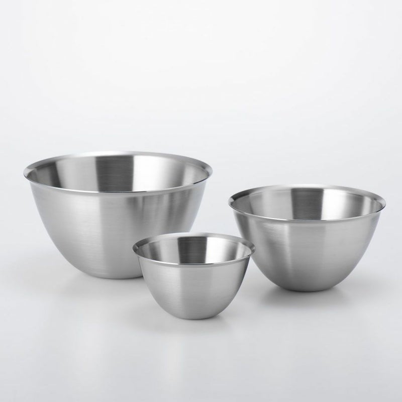 衛生面(粉や菌が残らないように洗える)に気を使い、縦長で場所をとらず、縦長だが安定感も併せ持ち、同じサイズを重ねてもはまり込まず、小さく見えるが容量は十分にあり、径が狭いので泡立てが早く、汁切れも良い…など細かいが、使い勝手に影響する事項もクリアし、その機能が美しいプロポーションに集約された。
