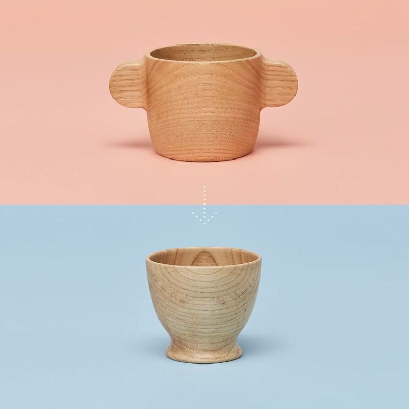 耳のような持ち手を両手でしっかりにぎり持てるコップです。
