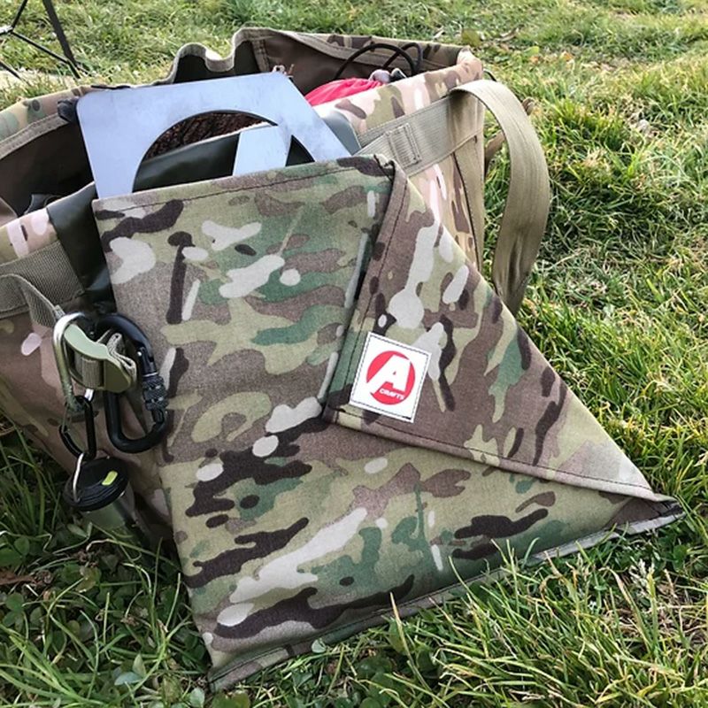 マルチカム (コーデュラ)と帆布(カーキ)かリアルツリー(コーデュラ)と帆布(濃茶)のケース付き 板を組み合わせて作る焚火台です。