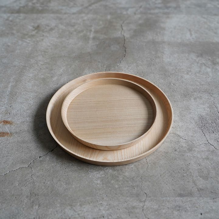 北海道産の「セン」の木を挽いたプレート。ガラスや磁器に比べて、軽くて持ちやすく、割れにくいのが特長。