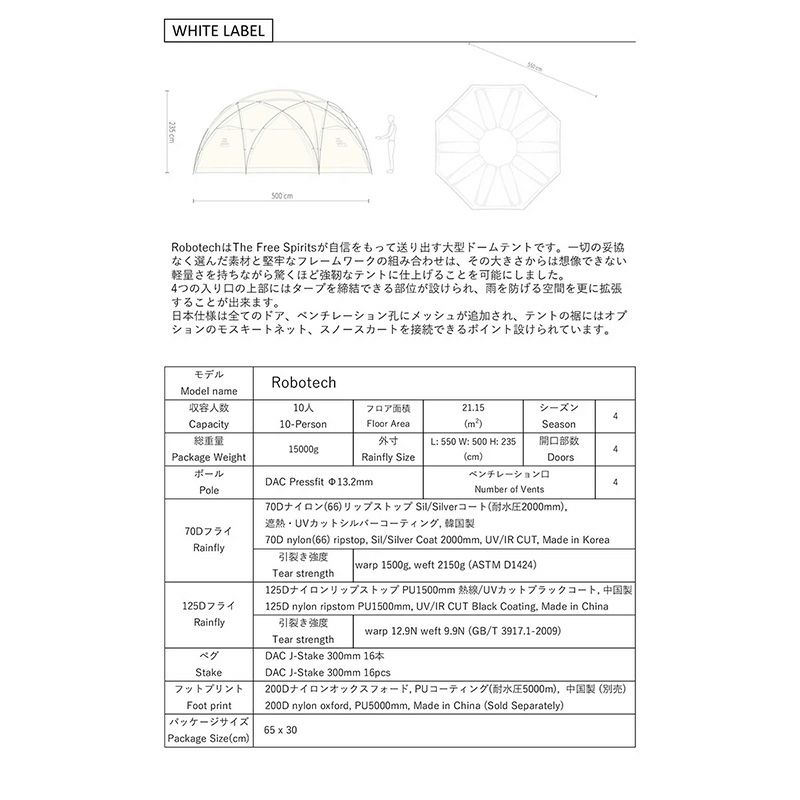 RobotechはTHE FREE SPIRITSが自信をもって送り出す大型ドームテント。