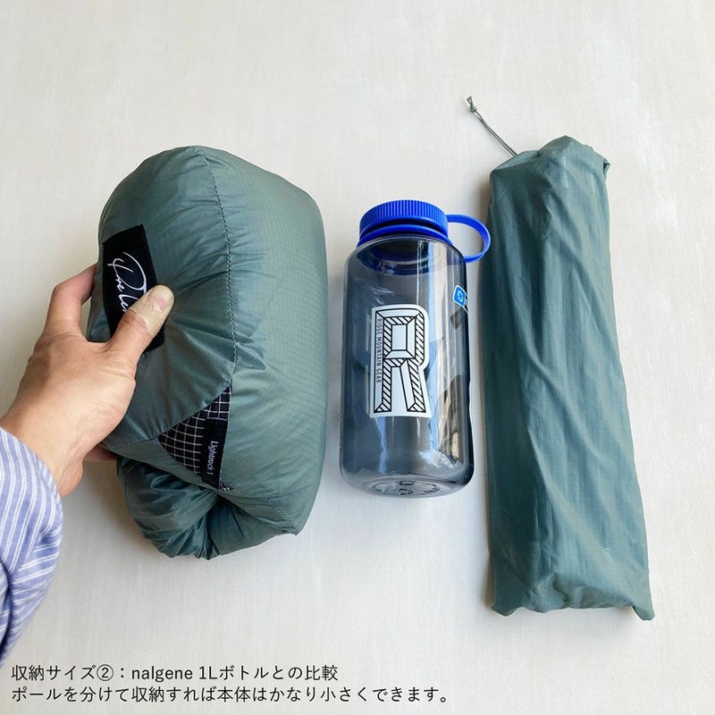 1440g フライ&インナー840g + ポール405g(リペアスリーブ、袋込み) + ペグ116g(袋込み) +スタッフサック73g