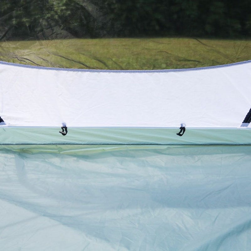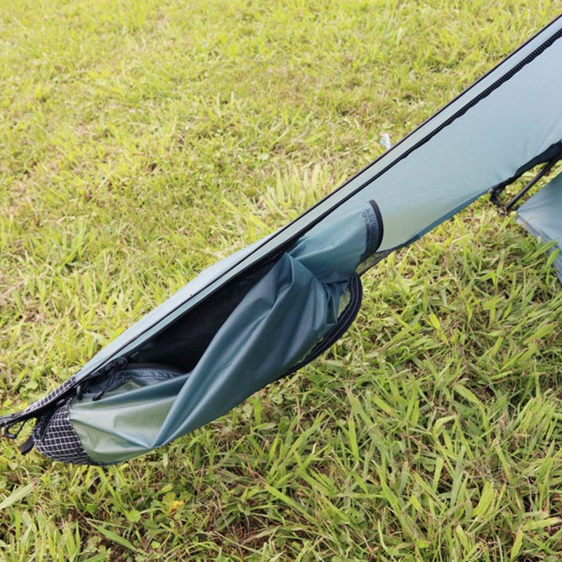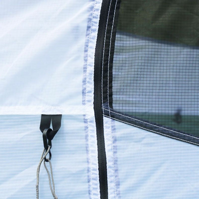 フロント側の大きな馬蹄型出入口は4つのファスナースライダーにより上からも下からも開くことができ、出入りがしやすいのはもちろん、上部を少し開けておくとテント内から外の様子が伺え、夜空の様子を確認したい時などに重宝します。