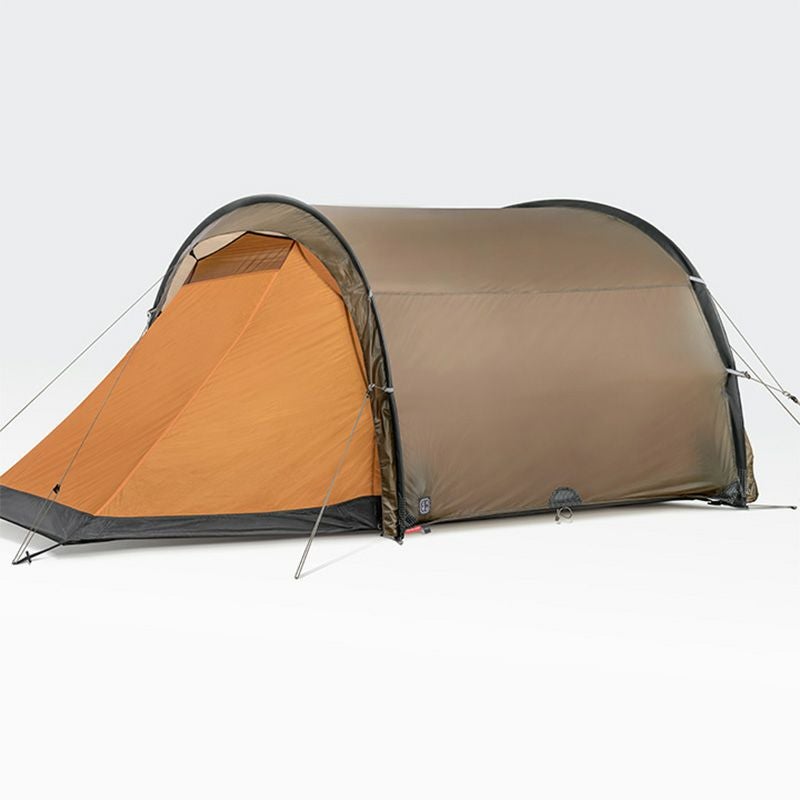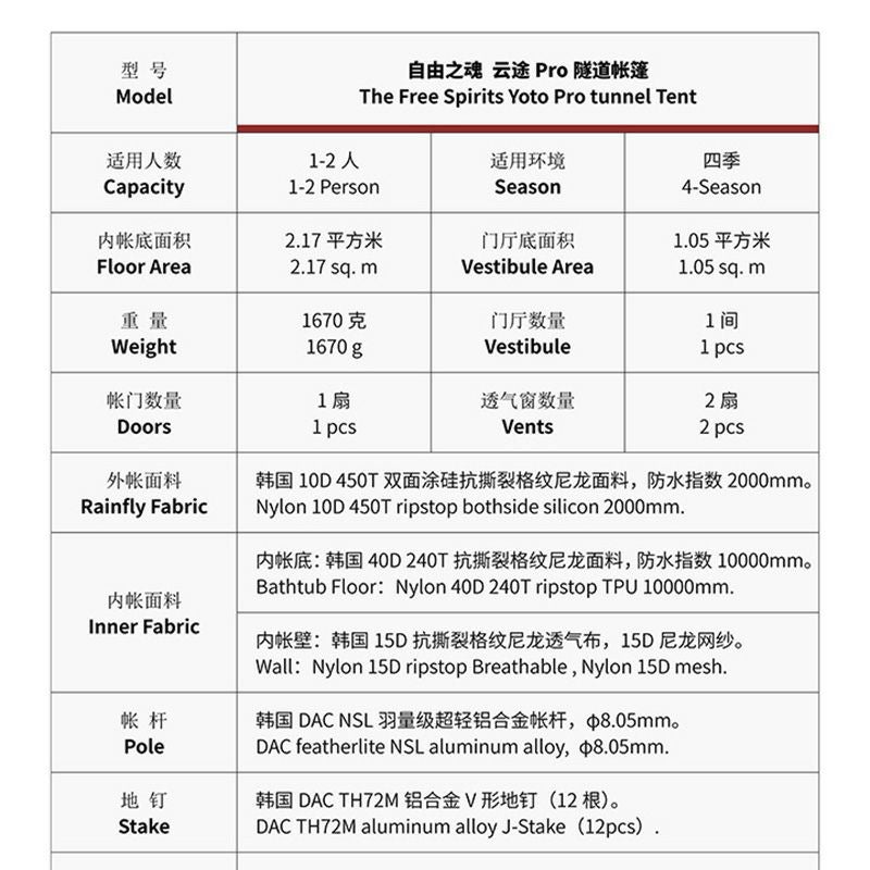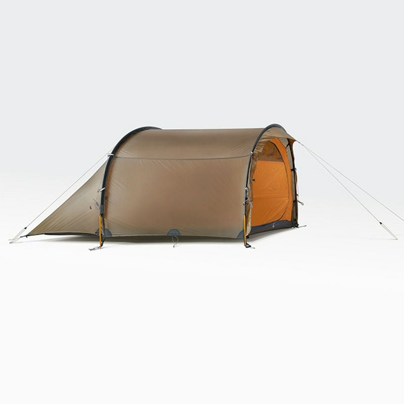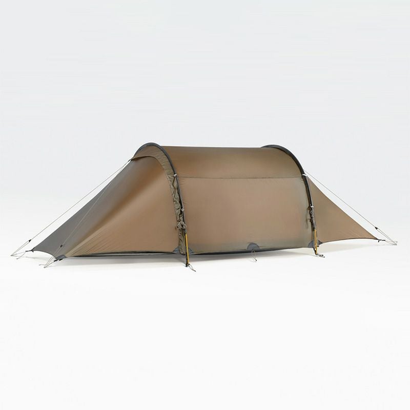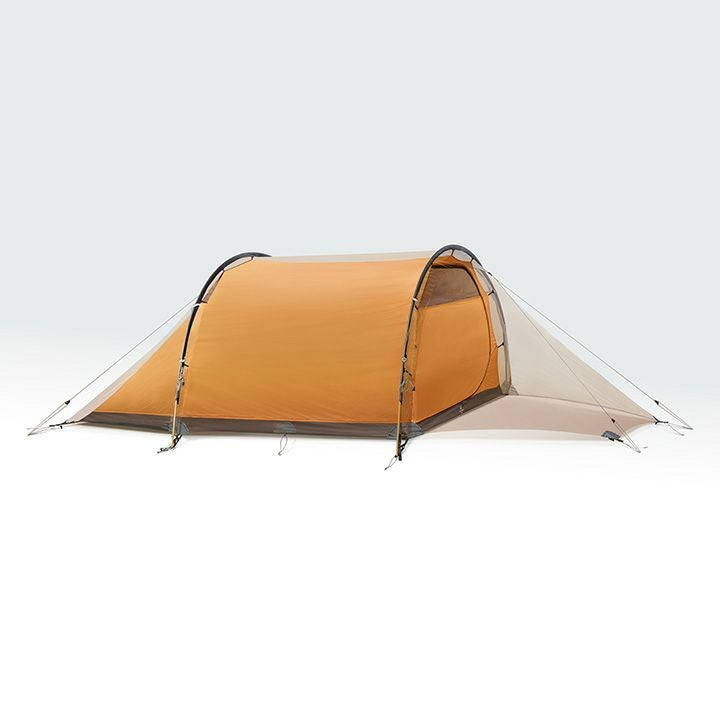 使用世界最高水準の強度を持つ10Dシルナイロン生地をベースに随所にダイニーマ生地の補強を施したYoto Proは、トンネル状の風を受け流す構造と相まってその生地の薄さからは想像できない強度を持つ、The Free Spiritsが自信をもって登山者たちに送り出す山岳テントです。40DナイロンにTPUラミネートを施したフロアも強靭な強度を誇りフットプリント無しで安心して使うことが出来ます。