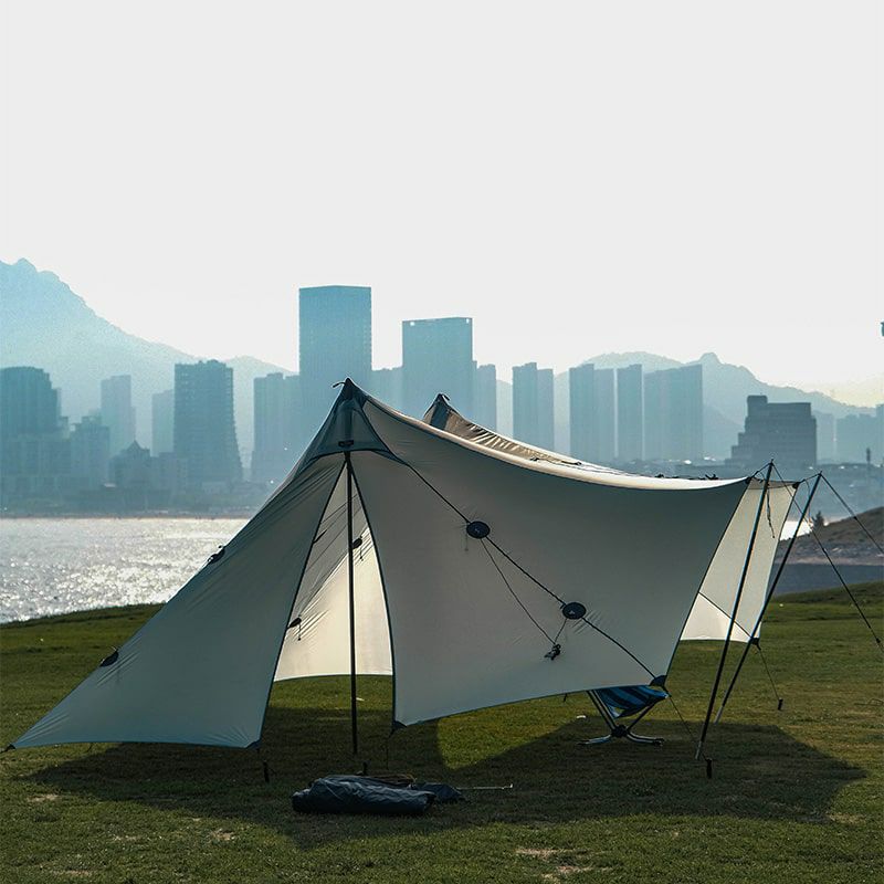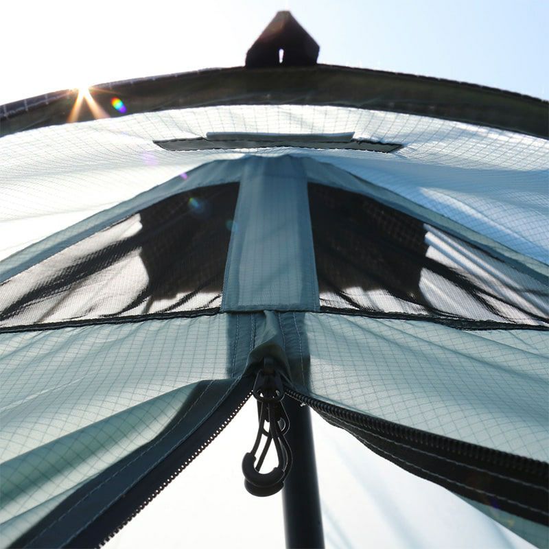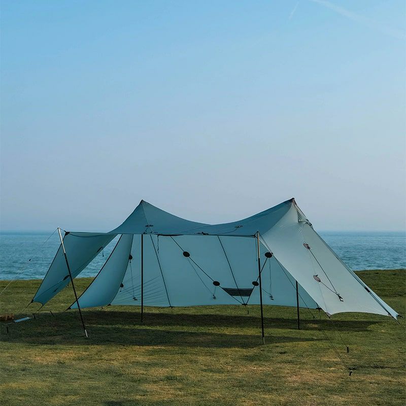 ポールを別途追加してタープのように開放的なスタイルのセットアップも可能