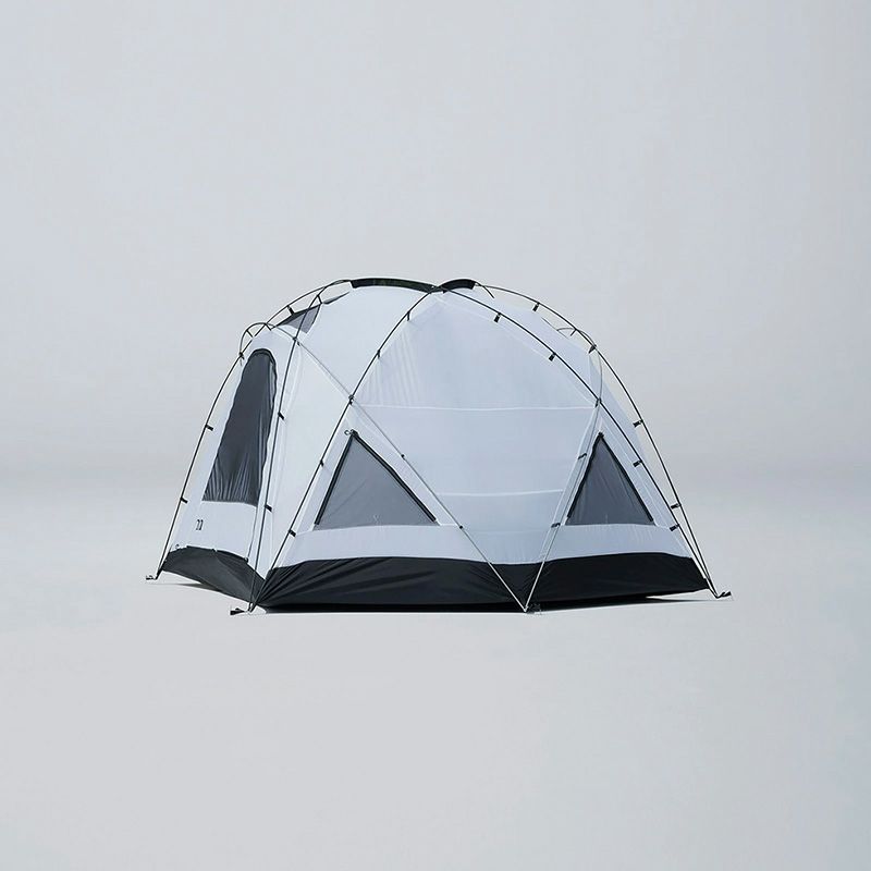 グスタフは高所登山のベースキャンプでの使用を想定したテントです。ポールを6本組み合わせたジオデシック構造を採用し、圧倒的な耐風性と居住性の両立を実現しました。
