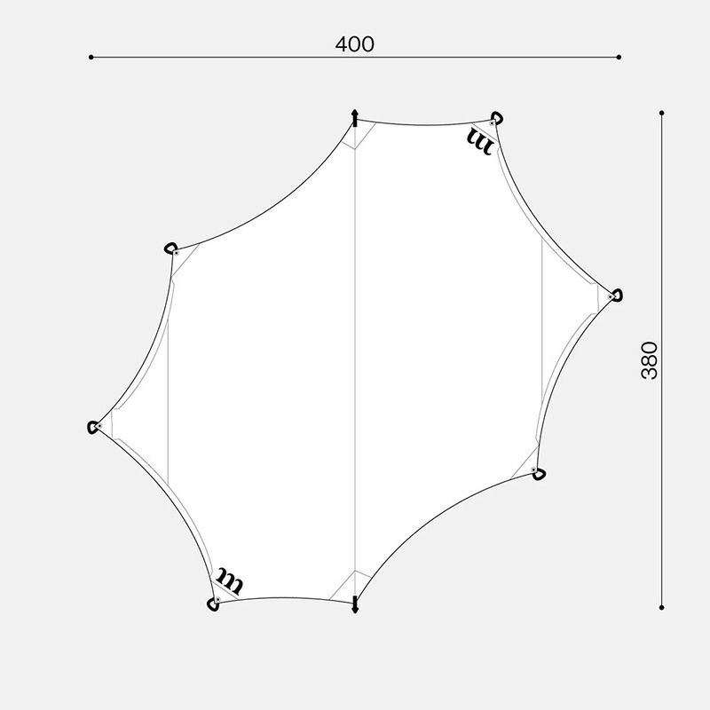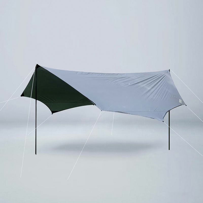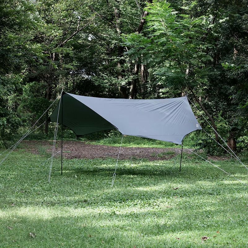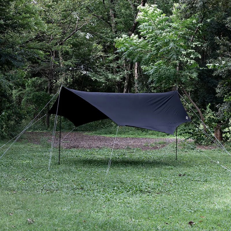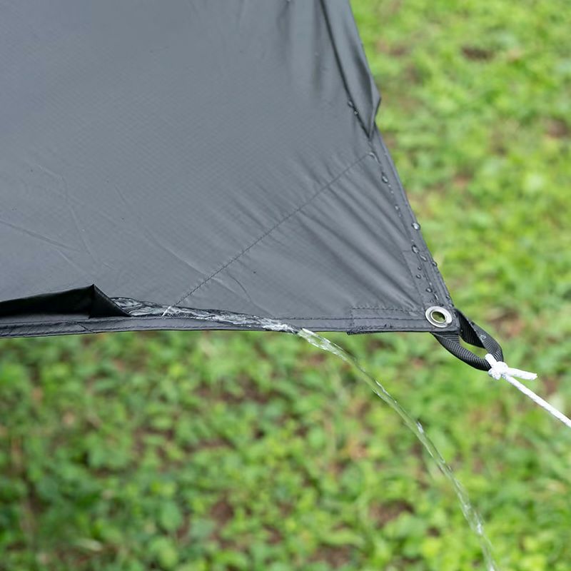 遮光性と排水性に優れたアシンメトリー形状のタープです。