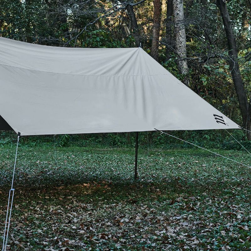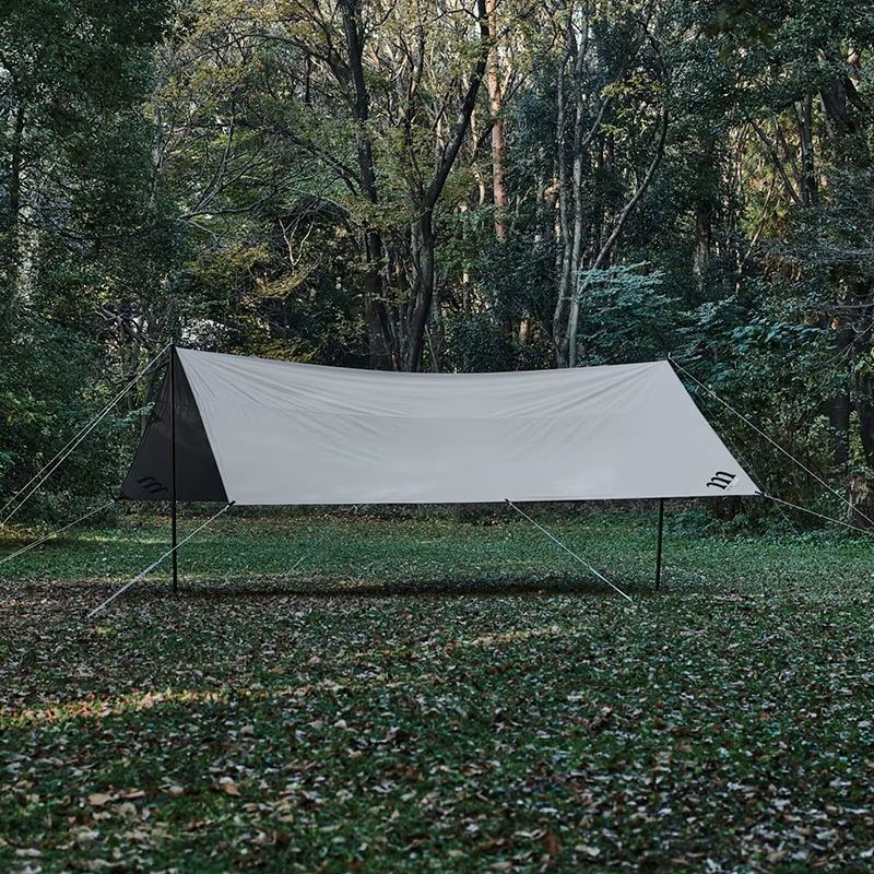 四角形状は汎用性が高く、豊富な設営バリエーションを誇ります。生地は化繊と比較し火の粉で穴の開き難い丈夫な素材。