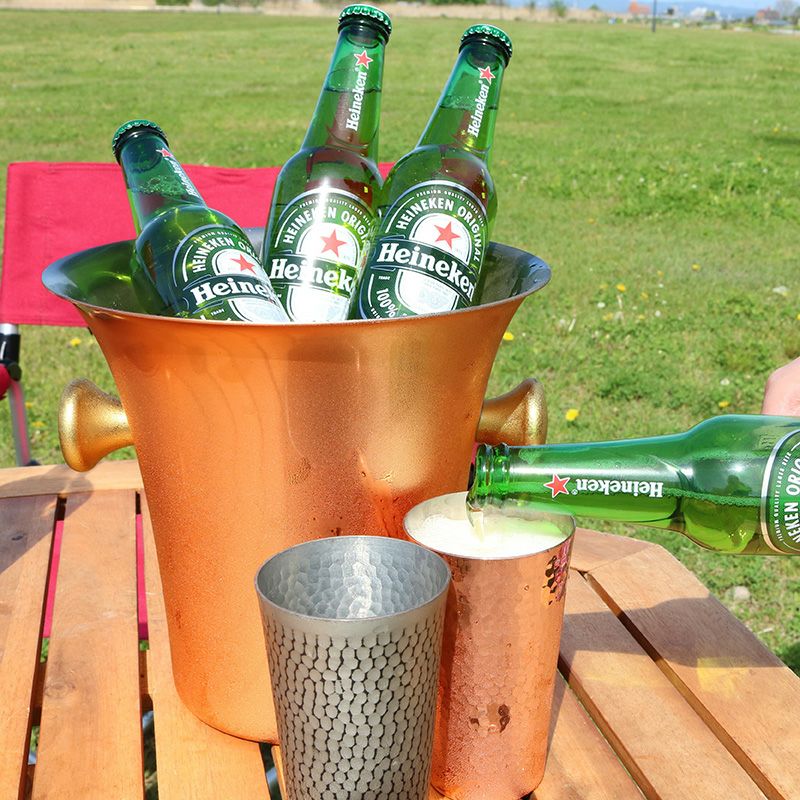 銅は金属の中でも優れた熱伝導率を誇ります。そのため冷やしたビールやジュースを注げば、あっという間にカップ全体が中の飲み物と同じ温度になり、いつでも飲み物そのままの味わいを楽しめます。