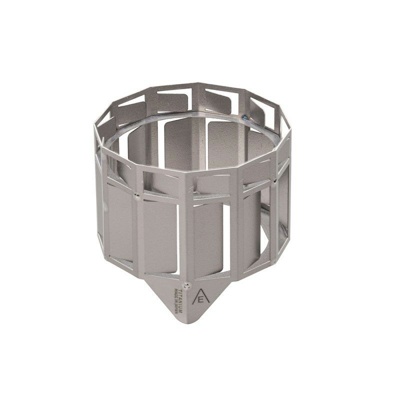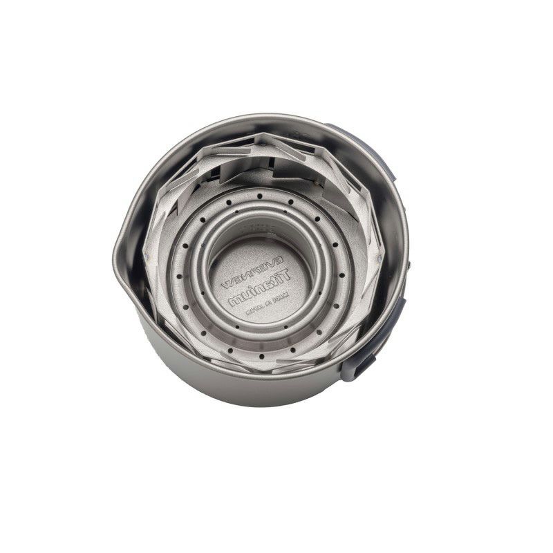 燃焼工学を用いて綿密な計算のもとに配置されたフィンが炎を旋回させ加熱効率を高めます。組み立て要らずの構造でアルコールを入れて火をつけクッカーを置くだけ。組み立ては必要なく、アルコールを入れて火をつけるだけ。ゴトクさえ不要です。