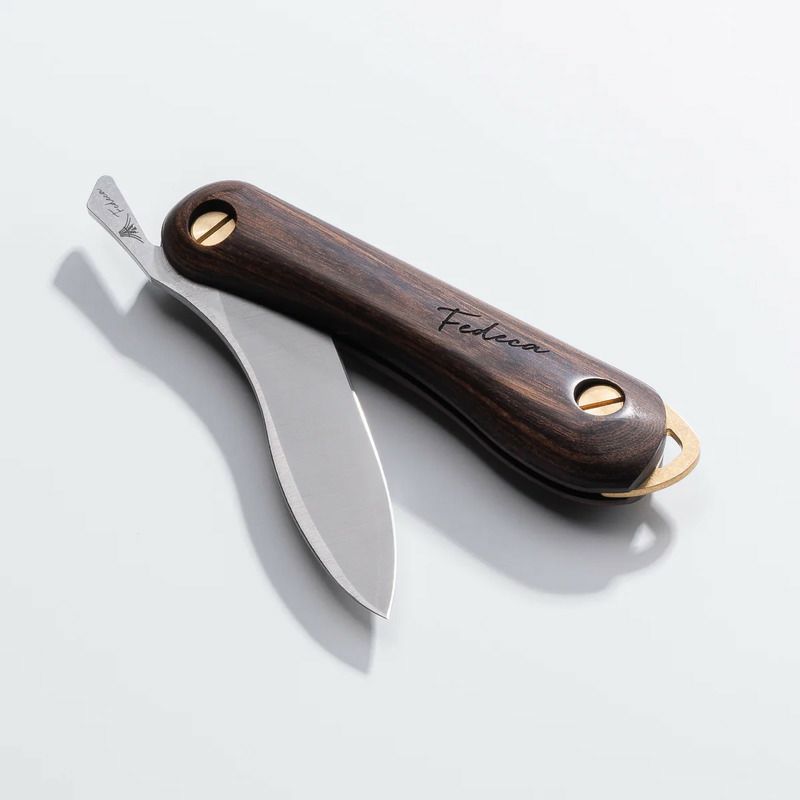 「折り畳める包丁」をコンセプトとした、折畳式料理ナイフの形状をそのままに、より携帯性を重視しつつ包丁の操作性を両立する、切りやすくてコンパクトなナイフです。
