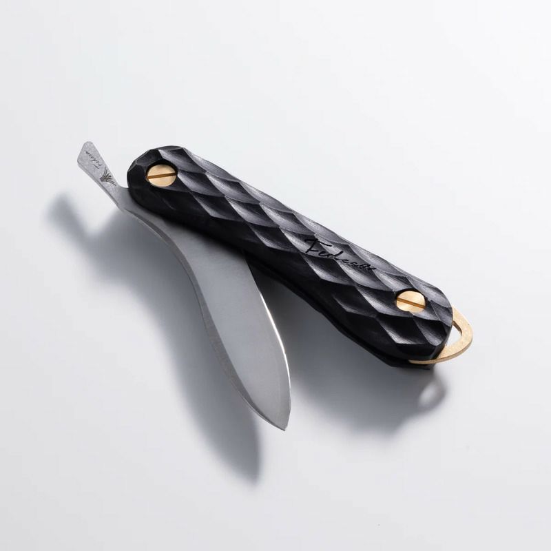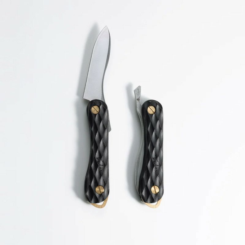 「折り畳める包丁」をコンセプトとした、折畳式料理ナイフの形状をそのままに、より携帯性を重視しつつ包丁の操作性を両立する、切りやすくてコンパクトなナイフです。