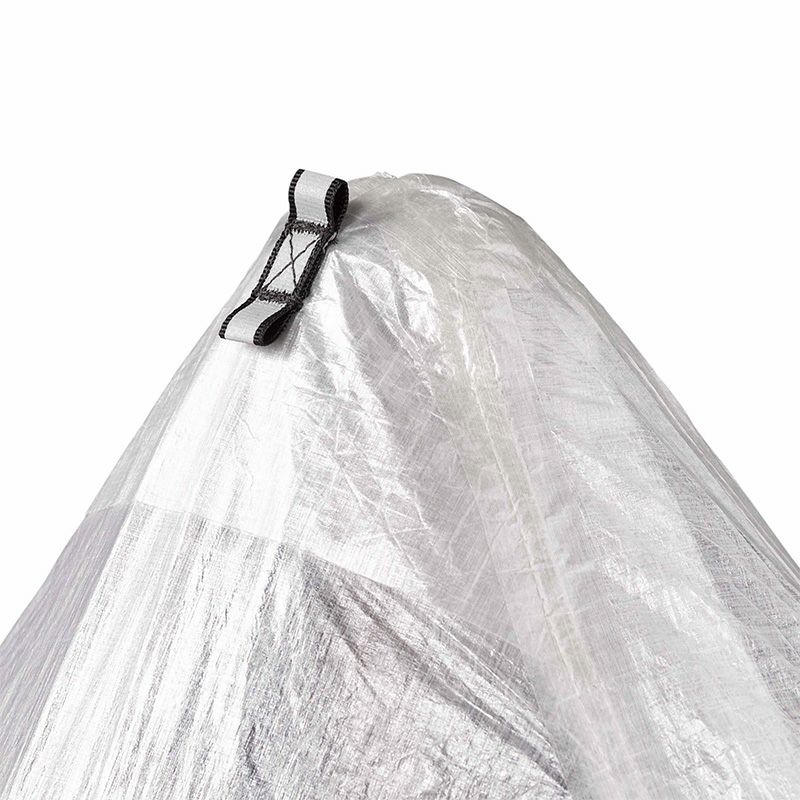 交換が可能な前室ドアのタイアウトポイント。DCF11で補強されたライナーロック付きの6つのタイアウトがあります。さらに2つの後部ミッドパネルタイアウト、2つのサイドミッドパネルタイアウト、1つのアペックスタイアウトによってテントの構造を強化し、風などによる影響を軽減します。