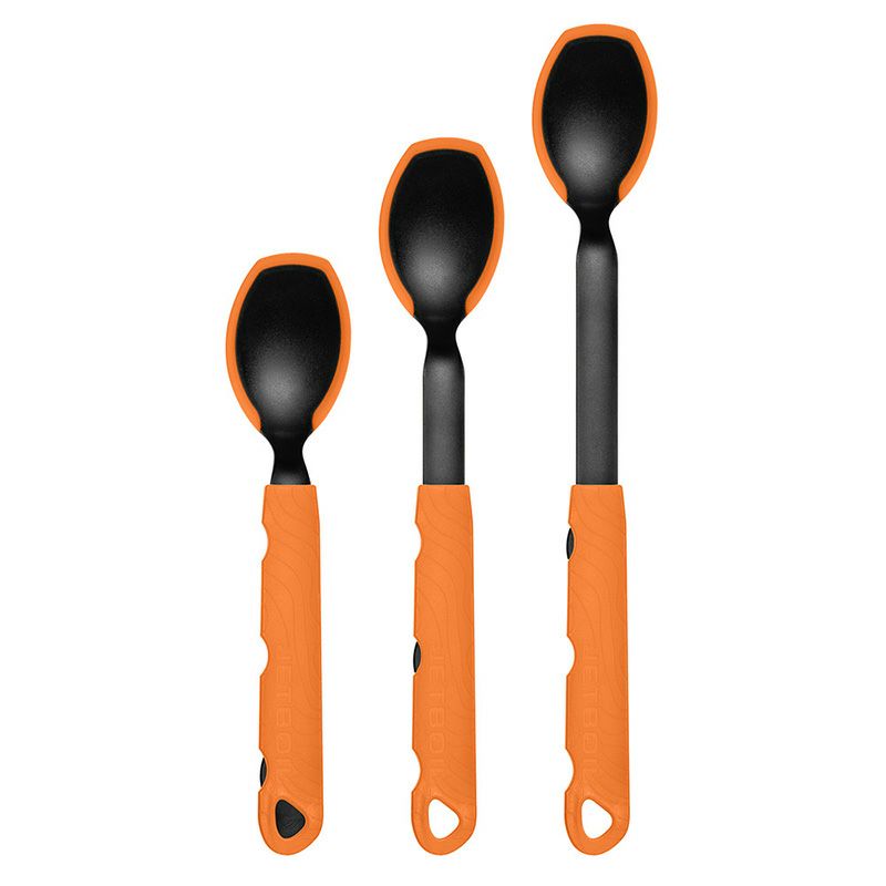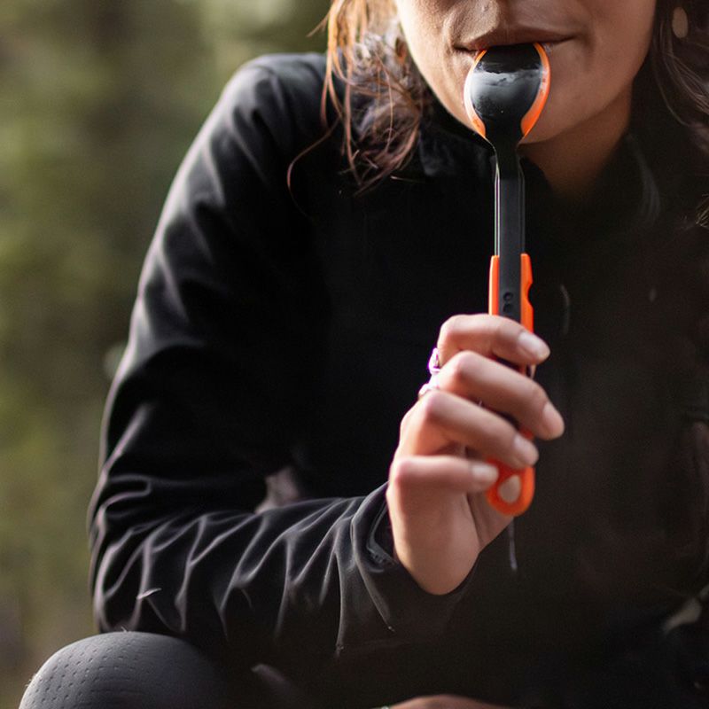 フォークとスプーンは3段階の長さ調節が可能で、深さのあるクッカーやフリーズドライの食品をパッケージからでも食べやすく、調理時のやけどの心配も軽減されます。