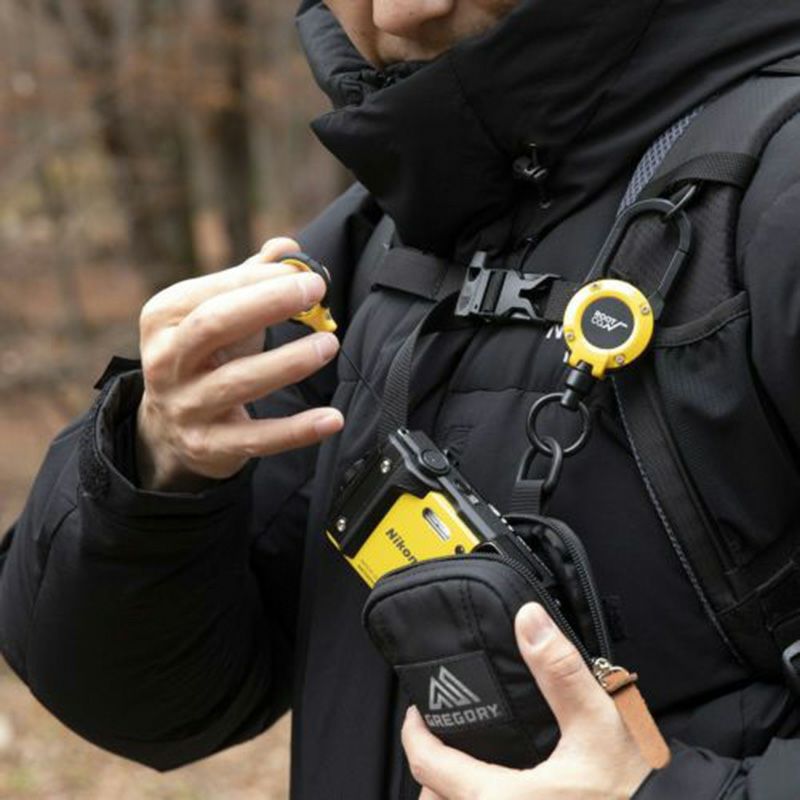 リュックや登山ザック・バッグ・ベルトループなどに取り付け、リール内から伸縮自在なコードを伸ばすことでカラビナリール(キーリール)やピンオンリールとして、使いたいときにスマートにアイテムを手元で使うことができます。
