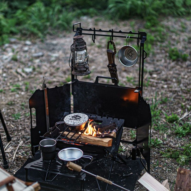 焚き火台+ウインドスクリーン+ハンガー+フロントテーブルと焚き火を快適に楽しむ為の機能を盛り込んだ、オールインワンな焚き火台