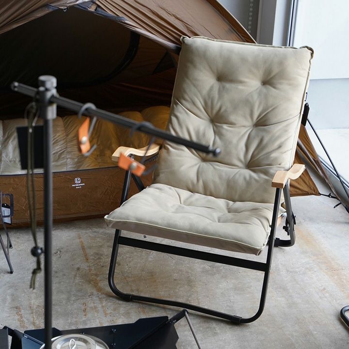 地面に近い位置で脚を伸ばして座れるローチェア。