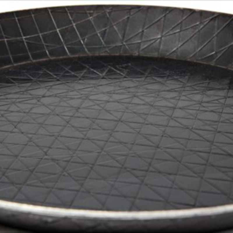 優れた熱伝導と抜群の熱保持力をもち、さらに表面には網目状の溝がついているので油や肉汁を流れやすくして料理の焦げ付きを抑えます。