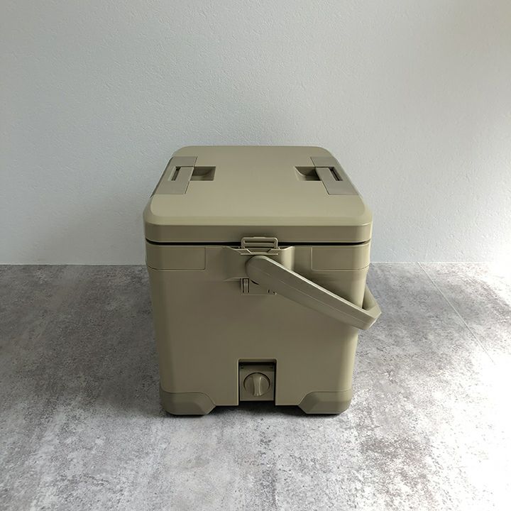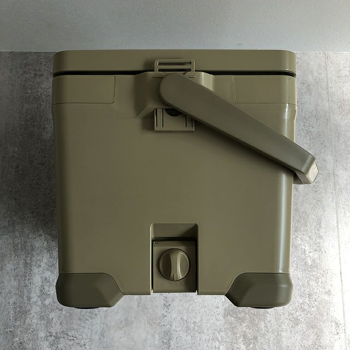 簡単操作で開閉できる便利な水栓。クーラーボックスをひっくり返さず、 手を濡らさずに水抜きできます。ヒンジ構造の為水栓を失くす心配もありません。