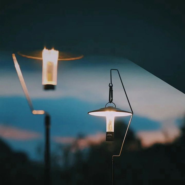 付属の伸縮性のアルミポールを伸ばせばローテーブルを照らすのに十分な高さにLEDランタンを吊り下げることが出来ます。