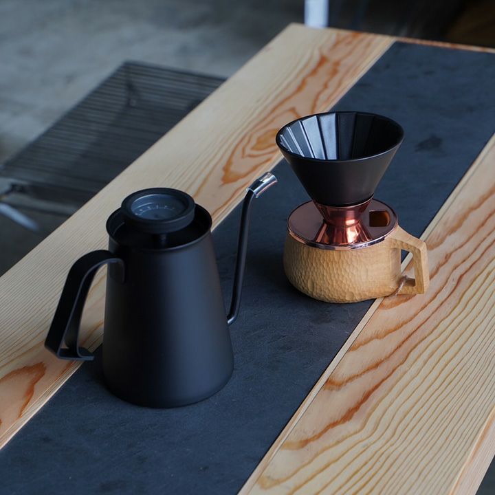 金属とのコンビネーションが印象的なドリッパーはあえて不均一な溝を施し、適切な抽出コントロールが出来るよう設計されている。