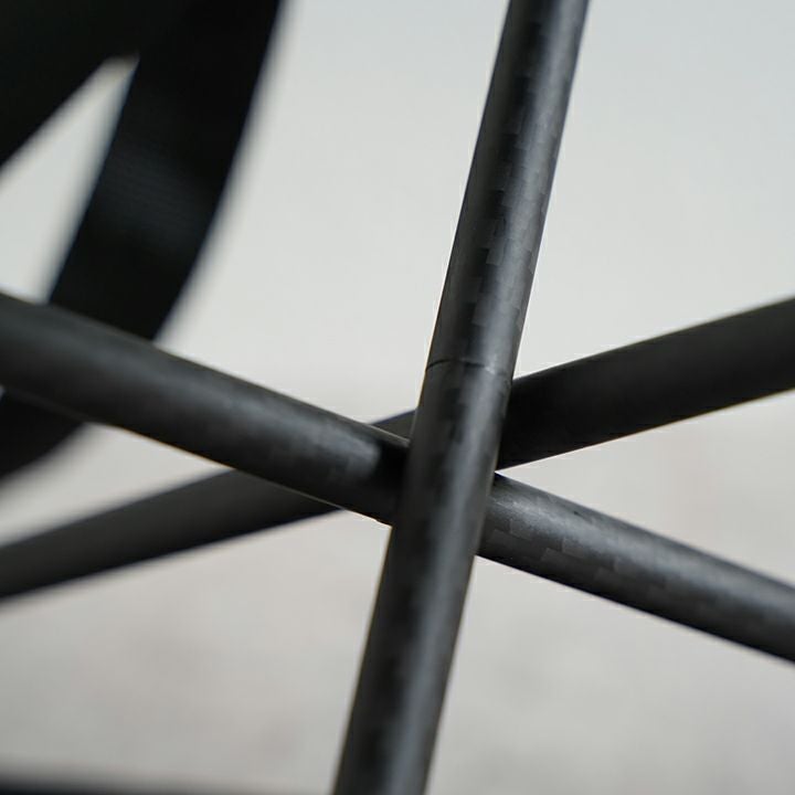 椅子のフレームに3本のカーボンポールを使用した超軽量ローチェア。