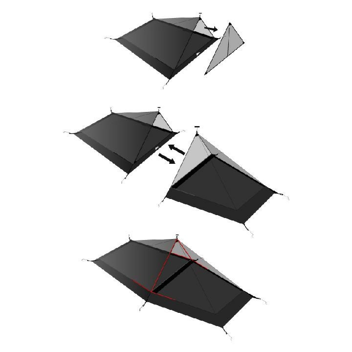 2張りのFR-メッシュを連結し、FRシェルターの形状に合わせた様々なレイアウトが作れます。