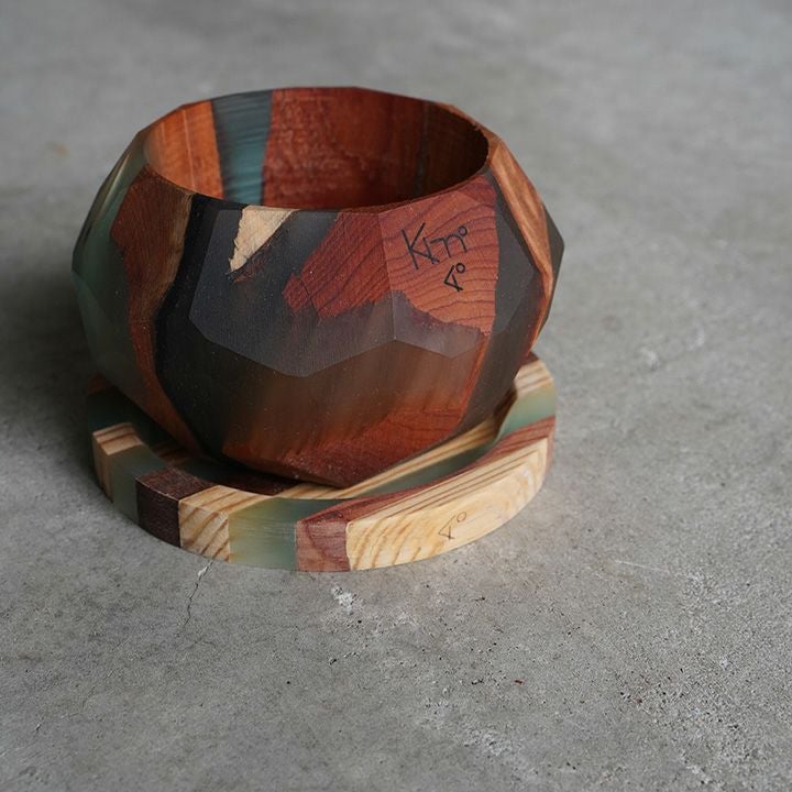 通常のインテリア、プロダクトに使われる木材だけでなく、KI-noではデザイナー、職人が山を守る杣人と共に山に入り、普段見向きもされない木、動物に食べられた木、普段では木材プロダクトとしては不向きな木材も素材として選定。