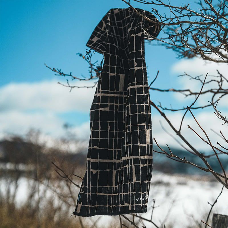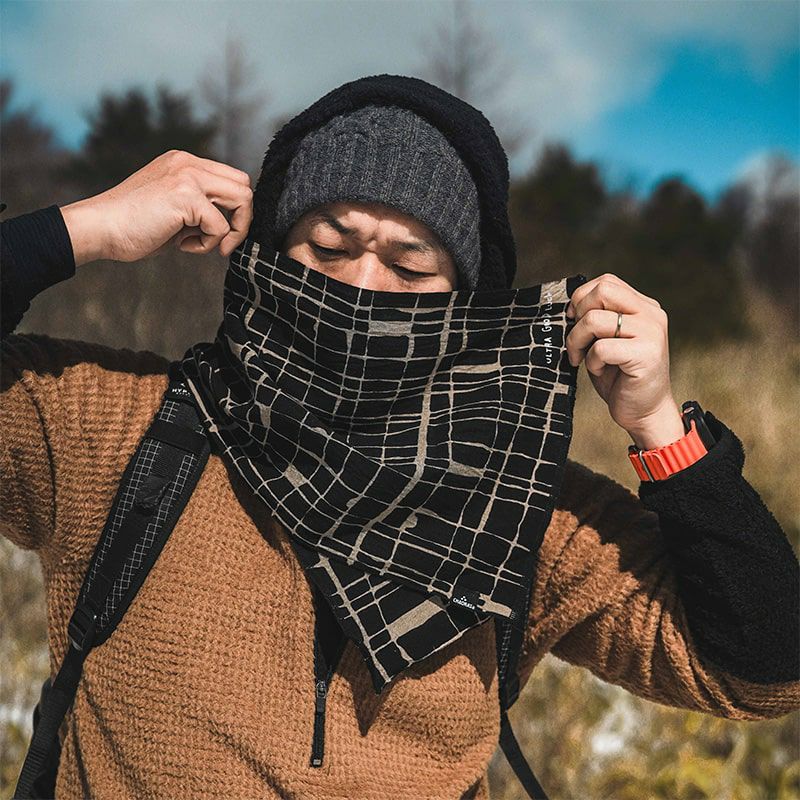 ULTRA GOOD LUCKとして初めて製作したてぬぐい「旅のてぬぐい / 道」をカラー反転したモデルとなっており、シンプルなデザインゆえにさまざまなウェアとも相性の良いシックな色合いで、街でも山でも温泉でも、使う場所を選ばない1枚となっております。