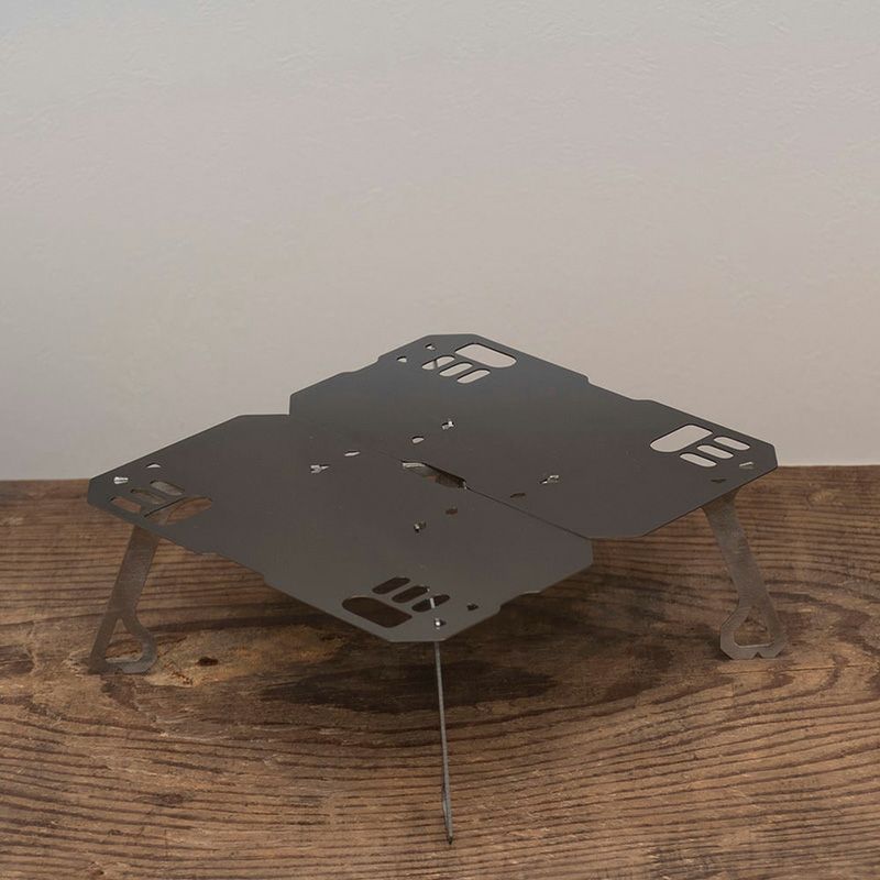 ソロでの使用に適しており、アルミ製の天板はアルコールストーブなどの熱にも耐えられます。
