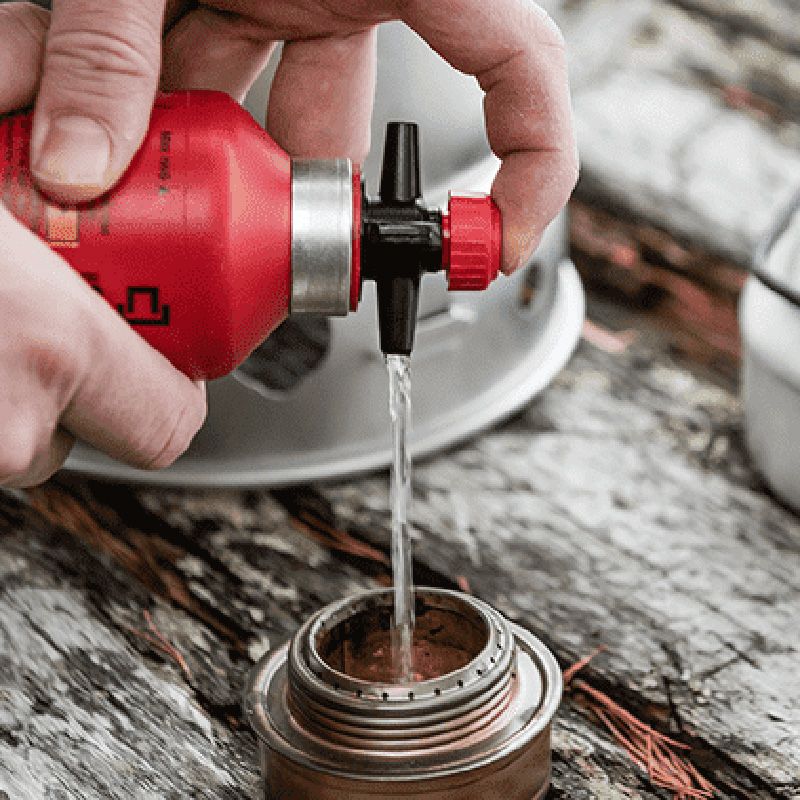 アルコールを持ち運ぶためのボトルです。フタはセーフティバルブになっており、赤いツマミを回してボタンを押し下げることで弁が開くしくみになっています。
