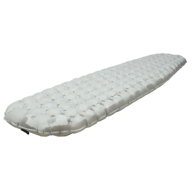 この構造はマットを厚くするほど内部の空気量が増えてR値が増加するメリットがありますが、厚さに比例して表面の凹凸が大きくなることで寝心地が悪化したり、材料が増えることで重量が増すデメリットもあります。