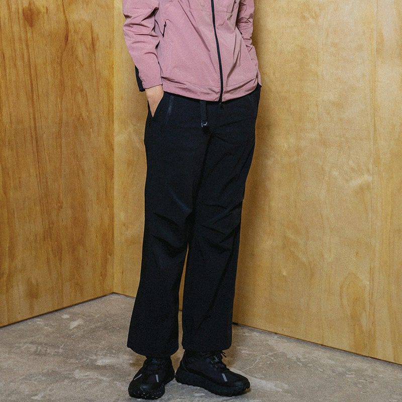 ウエストはウェビングベルト、裾にはストリングを採用しているためお好みのスタイルに合わせて調整が容易に行えます。