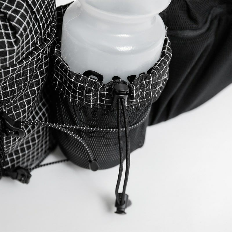 2つのボトルポケットを搭載。ダブルコードロックを採用しているため、コードで2か所の固定が可能。走っている際もボトルの揺れを抑えます。