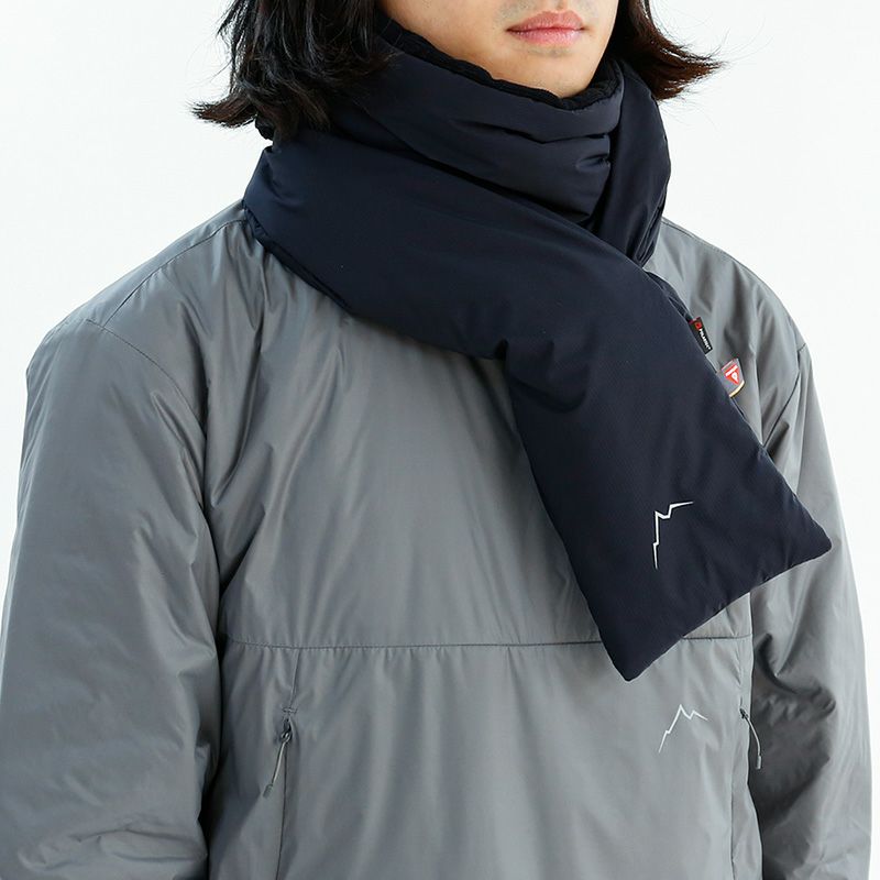マフラーの先端はオープンポケットになっており、もう一方の先端を入れ込んで固定できるようになっています。また使わない時は、オープンポケット部分にパッカブルに収納できます。