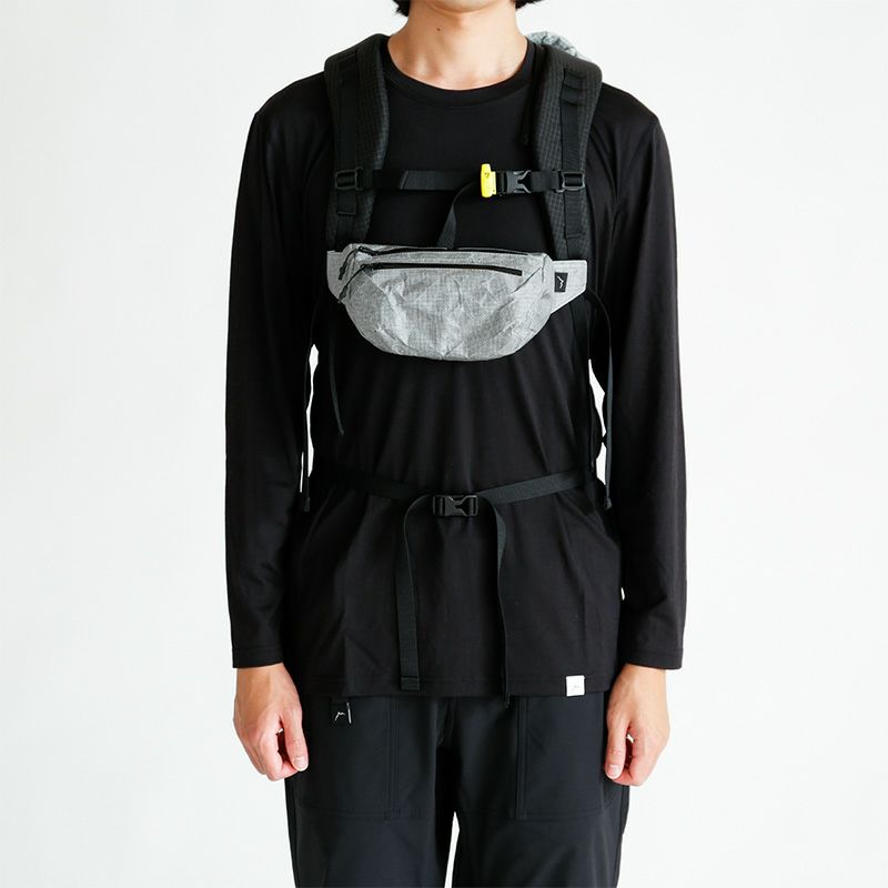ウエストやヒップ、肩にかけるなど様々な使い方が出来ます。それだけでなく、ザックのショルダーベルトを通すことでチェストパックとしても使うことが出来ます。