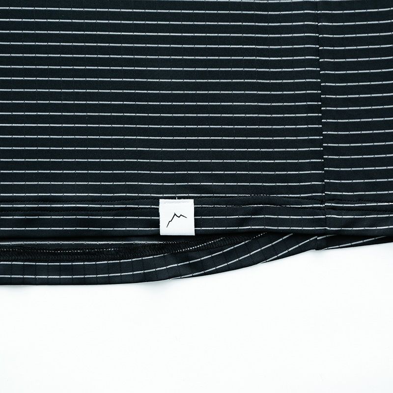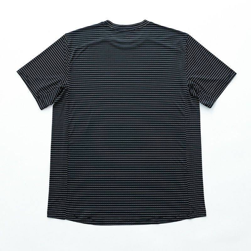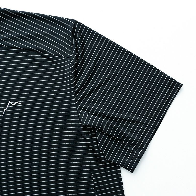通気性に優れたメッシュ素材を横向きに施すことでストライプ柄にデザイン。暑い季節でも快適に過ごせる軽量・薄手のトップスです。