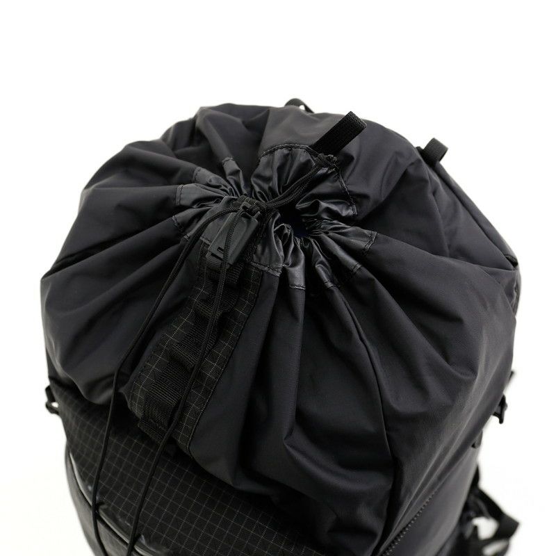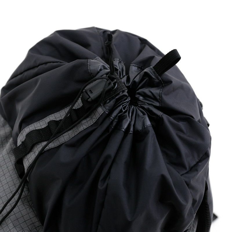 ドローコード式のメイン開口部は素早いアクセスを可能にし、さらにバックルで固定すれば荷物の揺れや雨の侵入を防止。