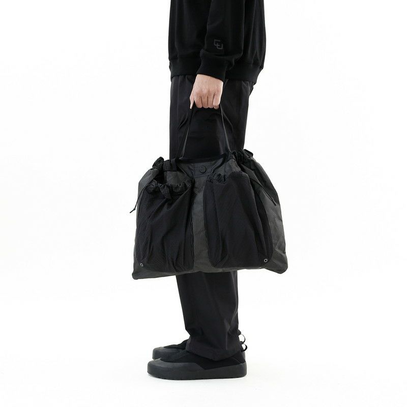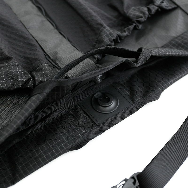 持ち手を引くことでバッグ上部が変形する独自の構造が特徴で、見た目にも動きのあるユニークなデザイン。 開閉部にはスライド式FIDLOCKバックルを採用し、片手でスムーズに開閉できます。
