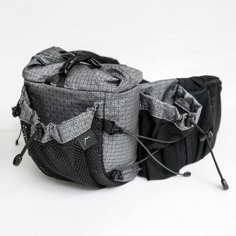 ロールトップタイプのメインに、外側にメッシュポケット。2か所のドリンクボトルポケット、2つのファスナーポケットを備えたウエストバッグ。