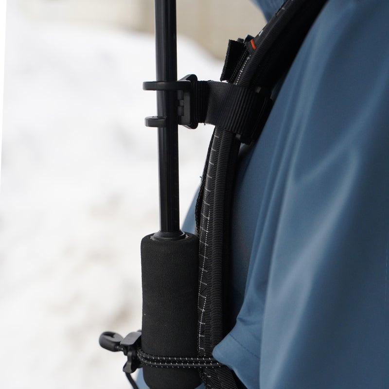 arata Umbrella Holder は、バックパックのショルダーショルダーストラップに AU-08 / ASU-08 を固定できる、シンプルで軽量なアクセサリーです。