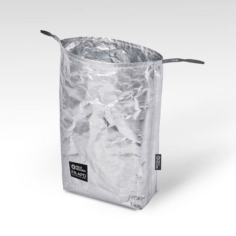 フィールドレコードが開発した複合素材「アルミ蒸着DCF」を使用した製品には全てFR-APDのマークがついています。
